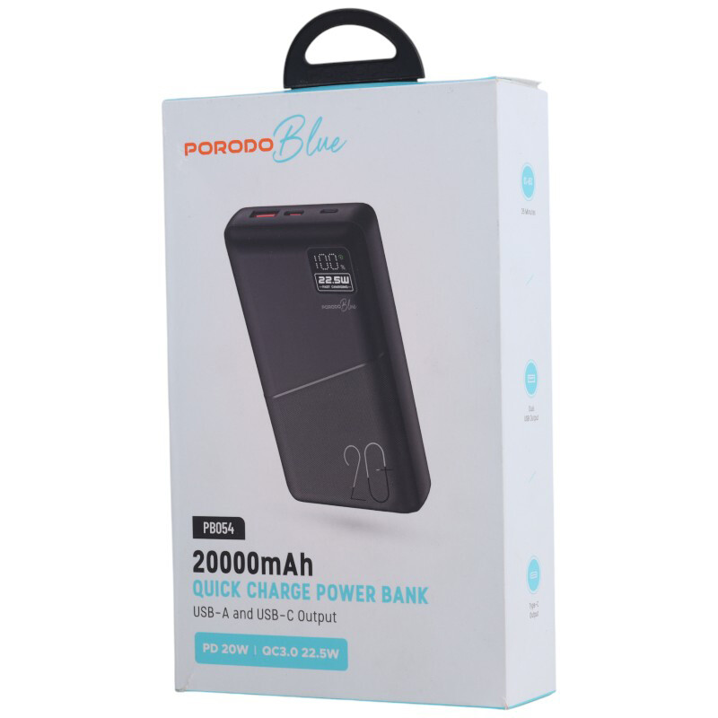 پاوربانک Porodo Blue 22.5W PD & QC PB054 با ظرفیت ۲۰۰۰۰ میلیآمپر ساعت، یکی از محبوبترین و کاربردیترین پاوربانکهای بازار برای کسانی است که به شارژ سریع، ظرفیت بالا و قابلیت اطمینان نیاز دارند. در ادامه به معرفی کامل، ویژگیها، مزایا، معایب و نکات مهم خرید این محصول میپردازیم تا بتوانید انتخابی آگاهانه داشته باشید.