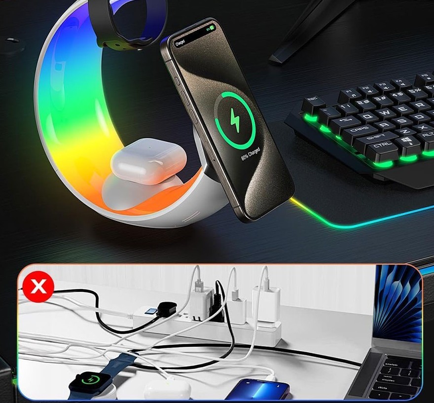 این ایستگاه شارژ چندکاره با سرعت بالا، انواع دستگاههای شما را شارژ میکند؛ از آیفونهای سازگار با MagSafe گرفته تا ساعتهای هوشمند و ایربادهایی که بهصورت بیسیم شارژ میشوند.